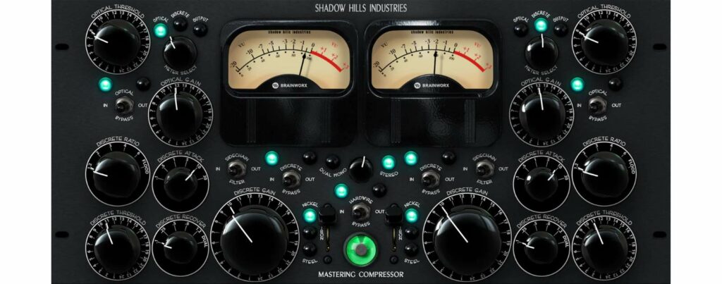 Développé par Brainworx et distribué par Plugin Alliance, le Shadow Hills Mastering Compressor combine deux étages de compression : optique et VCA.